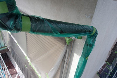 洗浄・養生は、塗装前の重要な下準備作業です。高圧洗浄による外壁の清掃と、窓やドア、植栽など塗料が付着してはいけない箇所を保護するための養生作業が含まれます。丁寧な養生は美しい仕上がりと施工品質を左右する重要な工程です。